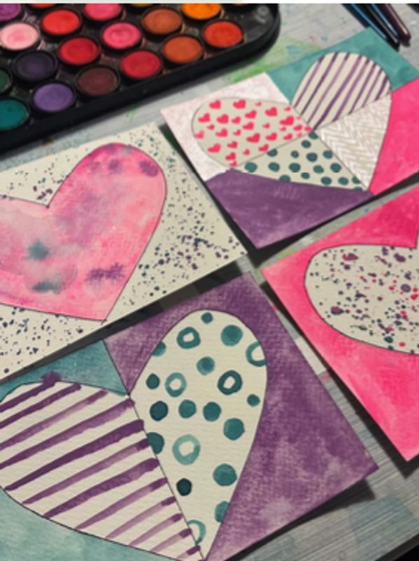 This watercolor class is all about exploring washes, blending, and layering to create heart-themed postcards. You’ll leave with a collection of handmade postcards to send to loved ones. No painting experience necessary - Lexi will guide you through watercolor basics before